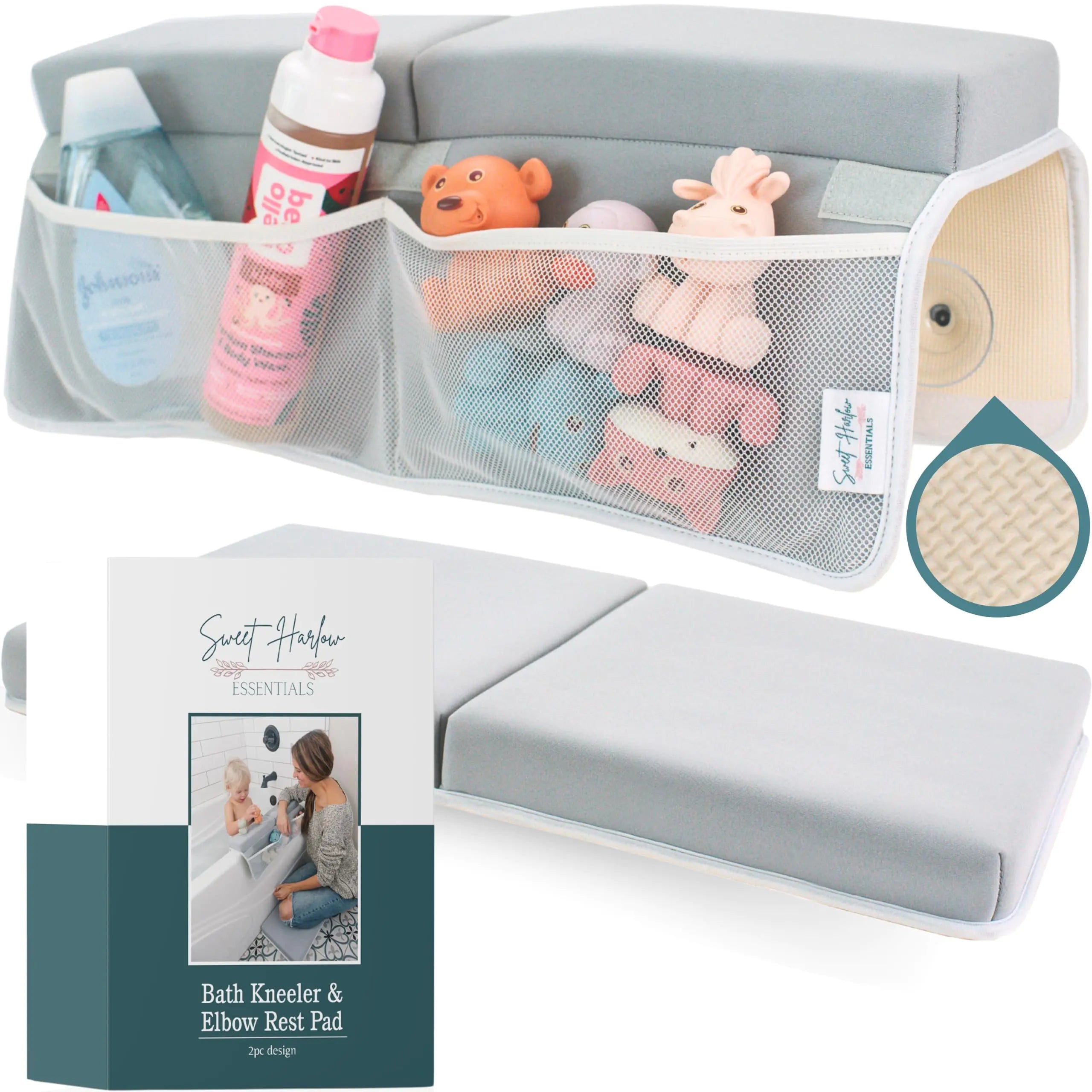 Slip Resistant: Safety is a top priority and our non-slip grip on the back of our bath time baby set is a fantastic addition. It makes the bath time kneeling pad set much sturdier on the floor and in the bathtub giving parents peace of mind.